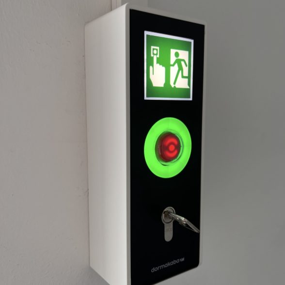Fluchttür-Terminal zur Absicherung von Flucht & Rettungswegen gemäß Vorschriften. Ermöglicht kontrollierten Zutritt und gewährleistet eine   sofortige Freigabe im Notfall.